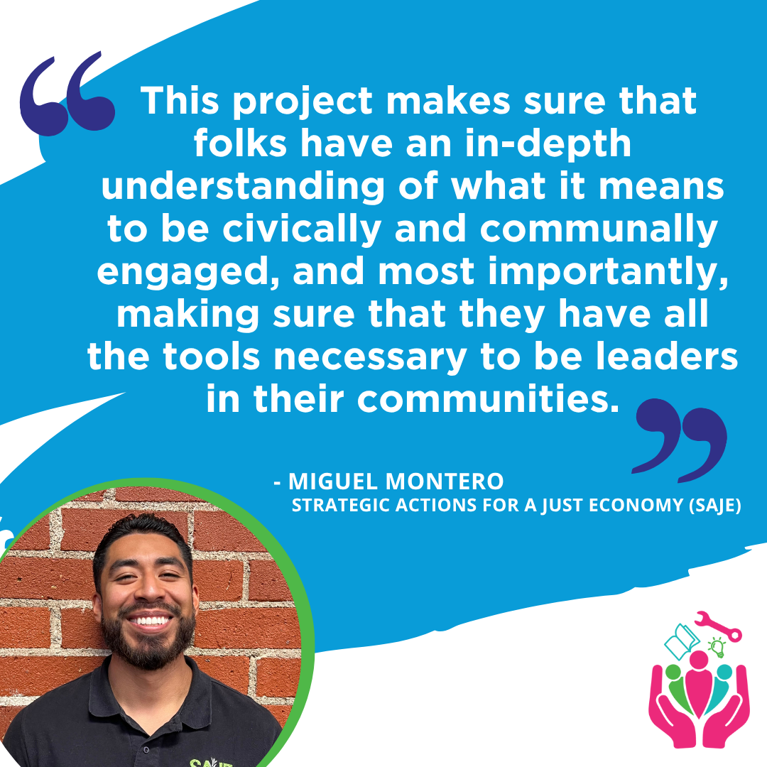 Meet Miguel Montero As a long-time partner of the Community Transformation Collective (CTC), Miguel has witnessed firsthand the growth and evolution of the people who participate and collaborate with CTC. For him, this partnership is rooted in solidarity and driven by a shared commitment to change - both at the individual and the community level. Miguel studied sociology at the University of California, Santa Cruz. From the beginning, he wanted to work with and support people. By fortunate timing, an opportunity to work with Strategic Actions for a Just Economy (SAJE) and then CTC crossed his path. Today, he serves as the Program Coordinator for SAJE where he helps strengthen and guide the transformative work in CTCs Housing Collective Advocacy efforts.